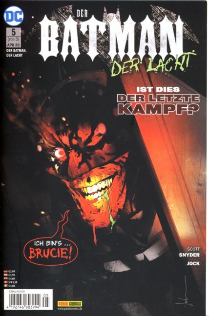 In einer anderen Realität wurde Bruce Wayne zu einem Batman/Joker-Hybriden – dem Batman, der lacht! Der irre Bösewicht und Fanliebling aus dem Event BATMAN METAL steht kurz davor, den Dunklen Ritter und ganz Gotham mit seinem Wahnsinn zu korrumpieren. Können ihn Jim Gordon und der selbst zum Monster werdende Mitternachtsdetektiv noch aufhalten, oder lacht am Ende der verrückte Batman?