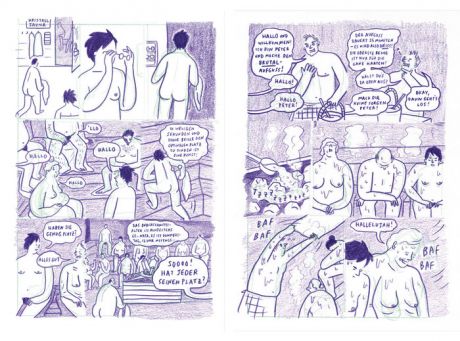 Mit feiner Farbgebung und lockerem wohlgesetzten Strich zeichnet sie ihre Reise nach und nimmt die Leser mit. So lässt sich unterhaltsam miterleben, wie sie sich ihren inneren (Bequemlichkeits-)Dämonen stellt und erfahren, dass Exotik und Fremdheit nicht an Entfernung geknüpft sind. Dabei komponiert sie wunderbar verdichtete Panelfolgen über interessante Begegnungen und breitet mit der selben Achtsamkeit die weite Brandenburger Landschaft sowie die monotone Fassede eines alten Plattenbaus über die Doppelseiten aus.