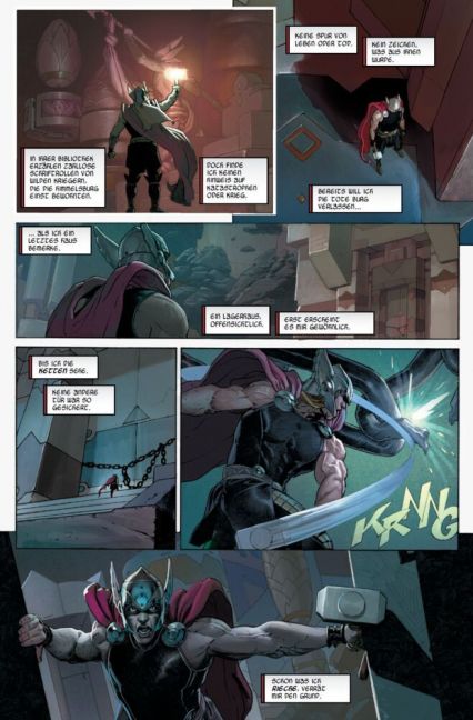 In allen Zeitebenen erleiden Unsterbliche einen brutalen Tod und Thor muss ihren Killer finden. In der fernen Vergangenheit hallt eine Höhle von Schreien gepeinigter Götter wider. Im Hier und Jetzt säumen die Leichen höherer Wesen seinen Weg durch die Tiefen des Kosmos. Und Jahrtausende in der Zukunft schlägt der letzte Fürst von Asgard gegen Horden von Berserkern seine finale Schlacht. Die Jagd führt die Donnerer dreier Epochen letztlich ans Ende aller Tage, wo sämtliche Götter des Alls geknechtet sind und ein Instrument der Vernichtung droht, das Antlitz der Schöpfung für immer zu verändern. Bühne frei für Gorr, den Götterschlächter!