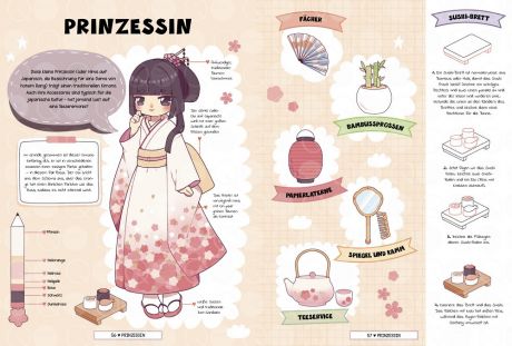 Die Möglichkeiten sind grenzenlos! Ran an Marker und Stift und erschaffe dir eine eigene Manga-Welt. Die Accessoires lassen sich beliebig vielen Charakteren zuordnen. Und wer sich langsam herantasten möchte, nutzt das Buch als Vorlage und zeichnet die Charaktere mit ihren Accessoires einfach nach.