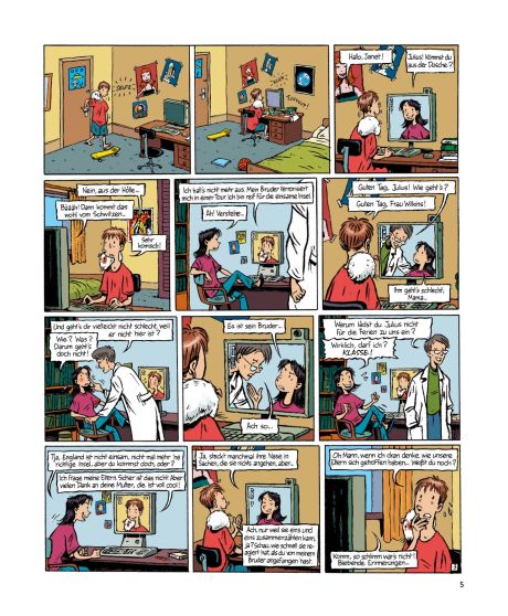Wer mit so einer Familie geschlagen ist, braucht keine Horrorfilme! Das mag ein normaler Teenagergedanke sein, doch in Julius' Fall trifft es tatsächlich zu. Daher macht er sich begeistert auf den Weg, als ihn seine Freundin Janet in den Ferien nach England einlädt. Kaum angekommen, beschleicht Julius jedoch der Verdacht, dass Janets Mutter, immerhin Nobelpreisträgerin, ebenfalls eine gehörige Schraube locker hat. Ehe Julius sich noch Gedanken über die vieläugigen Fliegen machen kann, mit denen Janets Mutter experimentiert – oder über Janets vorlaute Schwester, die dieser auf unheimliche Weise gleicht –, wird die berühmte Biologin entführt. Eine turbulente Rettungsmission beginnt, in deren Verlauf Julius und Janet es mit noch viel verrückteren Wissenschaftlern und Geschöpfen zu tun bekommen ...