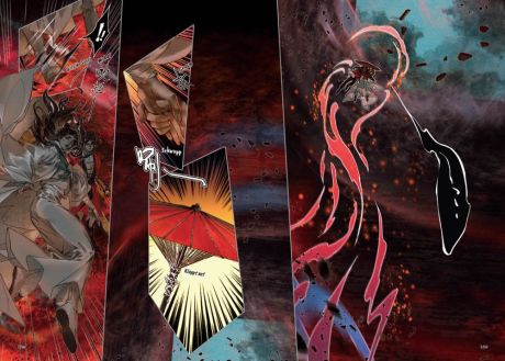 Über den beiden brach ein wildes Geprassel los, als ob ein Sturzregen von Giftschlangen auf den Schirm niederklatschte. Xie Lian jedoch spürte, wie eine Hand seine Schulter umschloss und er im nächsten Moment emporgewirbelt wurde. Mit der einen Hand hielt der junge Mann an seiner Seite den Schirm, mit der anderen Hand ihn selbst, und dabei stürmte er zum Angriff drauflos – ganz schön vermessen!
