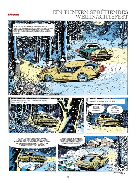 Neben dem Christkind hält der All Verlag in diesem Jahr bereits zum zweiten Mal eine besondere Überraschung zum Fest der Liebe bereit. Zeit seines Lebens war der belgische Autor (Die Minimenschen) und Zeichner (Die Abenteuer der 3A) Jean Mariette, der unter dem Künstlernamen Mittéď bekannt geworden ist, von der weihnachtlichen Stimmung fasziniert. Nachdem er in den 1960er-Jahren für das Magazin Tintin etliche stimmungsvolle Cover, winterliche Illustrationen und Kurzgeschichten zum Thema Weihnachten beigesteuert hatte, fertigte Mittéď nach seinem Wechsel zu Spirou von 1975 bis 1985 sechs weitere Weihnachtsgeschichten und drei Cover an. Besonderes Augenmerk der in diesem schmucken Band vereinten Erzählungen verdienen eine Zusammenarbeit mit Pierre Seron (Die Minimenschen) sowie Adaptionen von Die drei stillen Messen und Eine Weihnachtsgeschichte.