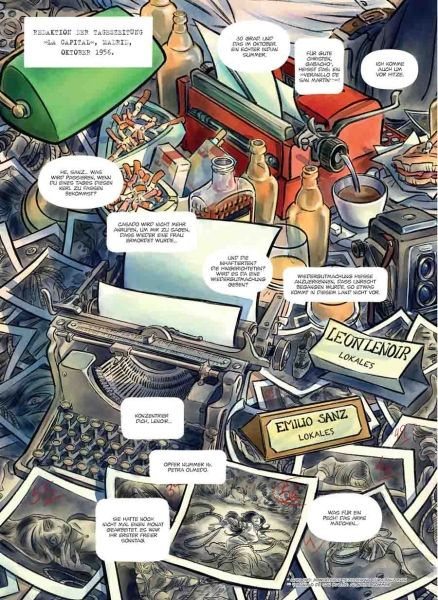 Band 2 der »Contrapaso«-Trilogie versetzt uns in die spanische Kinoszene der 50er, eine Epoche der Gegensätzlichkeiten, in der die heimische Filmkunst von Franco erdrückt wird, während Hollywood Unsummen investiert, um in Spanien seine Blockbuster zu drehen. Das ebenso gegensätzliche Duo aus Sanz und Lenoir führt eine schockierende Ermittlung inmitten dieser Wirren durch, und die Autorin Teresa Valero schenkt uns ein neues Meisterstück der »Graphic Novel Noir«.