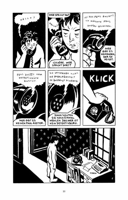 Paul Karasik ist die treibende Kraft hintern allen drei Comicadaptionen und hatte die künstlerische Leitung inne. "Stadt aus Glas" wurde vom preisgekrönten Zeichner David Mazzucchelli illustriert, "Schlagschatten" von Lorenzo Mattotti, der u. a. als Coverzeichner für The New Yorker arbeitet, und "Hinter verschlossenen Türen" wurde von Paul Karasik selbst adaptiert und gezeichnet.
