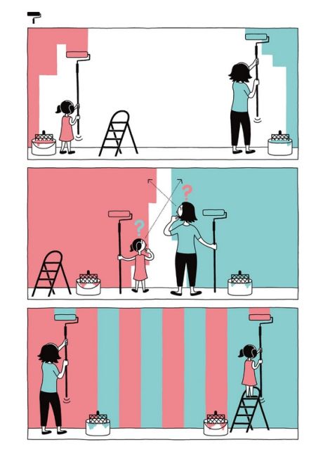 Die Kurz-Comics kommen komplett ohne Worte aus und funktionieren so auch über Sprachbarrieren hinweg. Selbst die Titel sind kleine Piktogramme für ein barrierefreies Lesevergnügen.