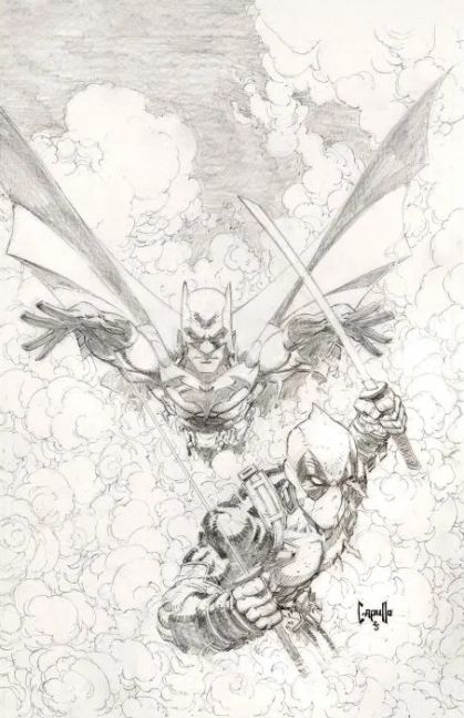 Deadpool und Batman kreuzen die Klingen (und Batarangs) und Batman feuert möglicherweise seine Batclaw auf Deadpool ...
