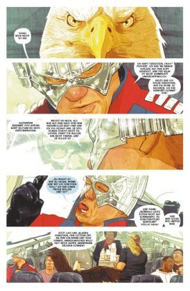 Ein absurder Story-Doppelschlag voll friedensbringender Gewalt, von Schauspieler Freddie Stroma, Rex Ogle (Teen Titans) und Tim Seeley (Nightwing) unter Mithilfe von Serien-Regisseur James Gunn, mit Zeichnungen von Matteo Lolli (Deadpool) und Mitch Gerads (Strange Adventures).