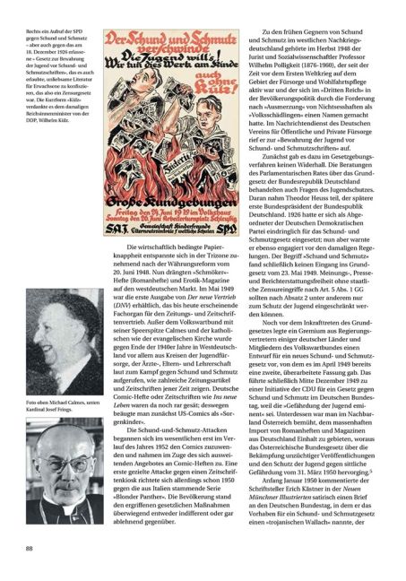 - „Zu haben bei Gustav Kühn“ - Mappe zum 150. Jubiläum 1925 - Carl Olof Petersen - ein Schwede im Dachauer Moos - Karl Theodor Zelger: „Wamperl und Stamperl“ - Die Druckerei Jacques Bollmann und der Micky-Maus-Verlag - Erich Will-Halle - ein Humorist mit kleinen Fehlern - Erich Ohser als krischan in den Lustigen Blättern - Hektor A. Kirsch alias »askende« im Stuttgarter NS-Kurier - „Bilderbogen vom Kriege“ - Versuch einer Ordnung - Robert Schilling und die Anfänge der Bundesprüfstelle - Fritz und Otto in Diensten der „Sozialen Marktwirtschaft“ - Peter Skodzik und die Berliner Comic-Sammlerszene - Wolfgang Sperzel - der Comic als Kettenreaktion - „Billy Bronx“ - extravagante Markenwerbung für Hallo Pizza