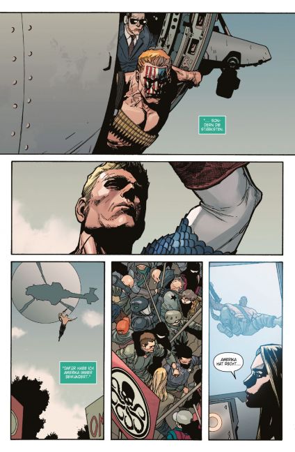 Band 1: Über 70 Jahre hat Captain America Land und Leute treu verteidigt. Aber Hydras Regime hat Spuren hinterlassen. Cap ist nun eine kontroverse Person, das Volk gespalten. Während er um Schadensbegrenzung kämpft, versucht eine Gruppe von Meinungsführern, Werte und Symbole der Nation zu korrumpieren. Wer sind Power Elite? Und ist es zu spät, sie aufzuhalten?