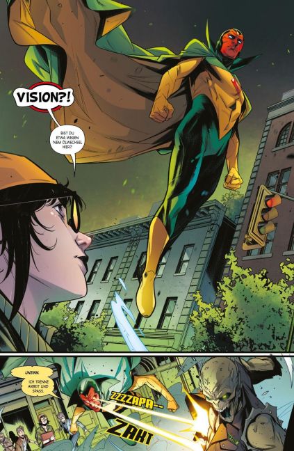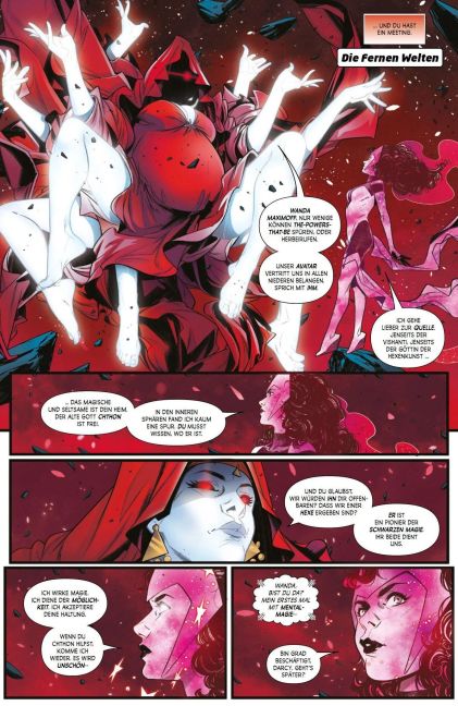 Auf der ganzen Welt tauchen mysteriöse Türen auf, die Passanten mit wundersamen Versprechen anlocken. Allen, die über die Schwelle treten, soll ein Wiedersehen mit ihren verstorbenen Liebsten winken. Aber niemand kehrte je aus dem Inneren zurück. Als Vision dem Phänomen auf den Grund geht, trifft er auf einen alten Gegner, der ihn mit dem Tod konfrontiert. Um das Leben ihres Ex-Gatten zu retten, muss Wanda sämtliche Register ziehen. Doch ihre Hilfe hat unerwartete Folgen.