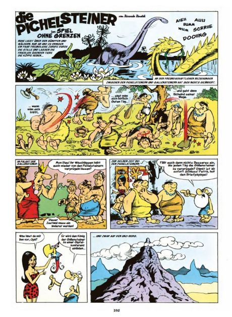 PICHELSTEINER waren gute acht Jahre lang ein Dauerbrenner quer durch fast alle Kauka-Publikationen. Die Steinzeit-Sippe besteht aus dem kreativen Flint, dem herrischen Opa Archibald, der sexy Petra sowie den wenig feingeistigen Zwillingen Neo und Theo. Immer mit dabei sind drollige Dinos, monumentale Mammuts, sabbernde Säbelzahntiger und anderes Urviehzeugs. Zwischen 1966 und 1974 erschien die Serie in Rolf Kaukas Lupo Modern, TipTop, Kauka Comic Taschenbücher und in Primo. 1970 verlieh ihnen der begnadete Riccardo Rinaldi ihr endgültiges Aussehen und machte die Pichelsteiner zur Kultserie.