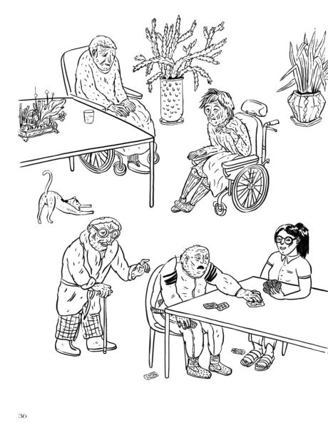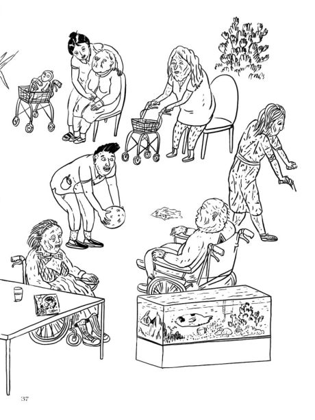 Ihre Beobachtungen geben eine Vorstellung über den Alltag im Altersheim. Auf herrlich authentische Weise erfahren wir mehr über die Bewohner*innen, sowie die Pflegenden mit Migrationshintergrund. Es entwickeln sich anfänglich belanglose Dialoge zu aberwitzigen Situationen oder ängstliche Empfindungen zu albtraumhaften Verfolgungszuständen. Der scheinbar ruhige letzte Lebensort kann doch sehr ausufernd sein! Wohl weniger in Dezibel, sondern an inneren Zuständen und Erinnerungsfetzen. Lika verwandelt scharfsinnig ihre Beobachtungen in pointierte und berührende Geschichten. Dabei geht sie behutsam und gefühlsvoll vor, sie nimmt uns sozusagen mit ihrem Pinselstrich mit auf die Reise. Obschon die Geschichten episodenhaft sind, schafft es Lika einen Sog zu entwickeln. Denn dort, wo keine Antworten mehr auf Fragen gegeben werden, können uns Bilder verstehen helfen.